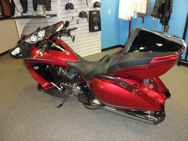 I am rather fond of the Vulcan line (as I ride one) and these are two nice cruisers. At the left is the Kawasaki Vaquero (which means cowboy in Spanish) and to its right the Kawasaki Voyager. Both have 1700cc engines, V-twin, and water cooled. The Vaquero is a "bagger", while the Voyager is a full out touring bike along the line of many of the HD line, though not as equipped as the Honda Gold Wing. On either of these motorcycles long distance touring would be a piece of cake-they would take you anyplace you would want to go-coast to coast without a problem.